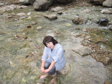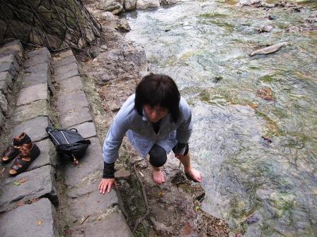 やおら靴下を脱いで、、、川に入ってゆく