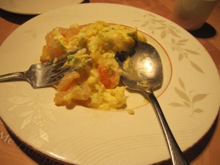 左…卵とえびの炒め物→可もなく不可もなく